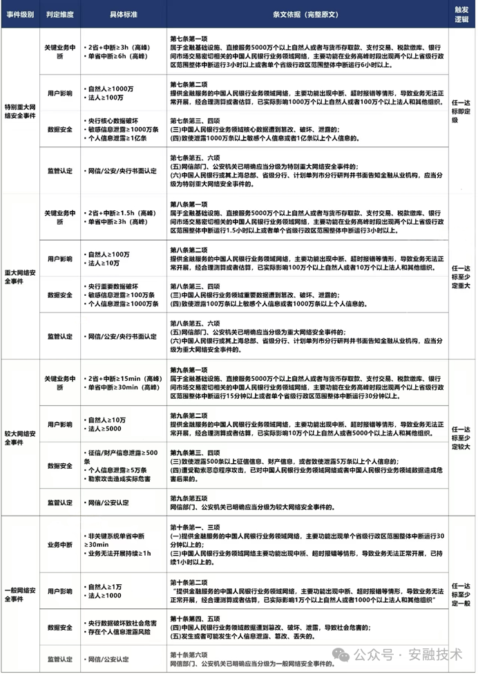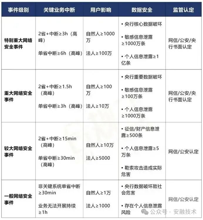 中国人民银行令〔2025〕第4号,中国人民银行业务领域网络安全事件分为四个等级:特别重大、重大、较大和一般。