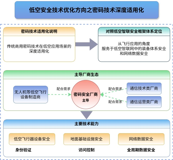 传统安全技术在低空领域的应用挑战 报告调研发现,低空安全市场目前还处于早期培育阶段,传统安全厂商正在对作为低空经济活跃参与者的低空飞行器制造商进行风险意识、安全理念的市场推动工作。与此同时,针对传统安全技术如何运用到低空应用场景中,以及如何应对应用挑战,成为当下网络安全产业界和低空经济活跃主体共同关注和热议的课题。 传统安全技术在低空领域的局限性主要包括:轻量级安全机制不足、动态自适应安全尚未完善、身份认证与授权体系不健全、威胁检测与响应能力不足、数据隐私保护技术欠缺、安全标准与规范缺失。 1. 轻量级安全机制不足 低空智联网中的设备,如无人机、传感器节点等,通常具有计算能力有限、能耗敏感等特性。这些资源受限的设备难以运行复杂的加密算法和安全协议。传统的密码算法,如RSA、AES等,虽然在计算能力充足的设备上能够提供强有力的安全保障,但在资源受限的设备上,它们的计算开销过大,导致设备运行缓慢、能源消耗过快,甚至可能无法执行这些算法,不适应资源受限设备。这容易给攻击者提供可乘之机,比如攻击者可以通过物理攻击、侧信道攻击等方式获取敏感信息。 2. 动态自适应安全尚未完善 目前,大多数传统安全策略是预先设定的,缺乏实时调整能力,无法根据实际的网络状态和威胁情报进行动态调整。这种静态的安全机制无法有效应对新的攻击手段和安全漏洞,可能导致安全防护的滞后和失效。低空智联网环境具有高度的动态性,设备的接入和退出、网络拓扑的变化频繁发生。因此,安全策略应具备自适应性,以应对不断变化的安全威胁。 3. 身份认证与授权体系不健全 在低空智联网中,不同类型、不同厂商的设备大量存在,缺乏统一的身份管理和认证机制。由于缺乏统一的身份认证和授权体系,导致设备之间的信任关系难以建立,存在认证漏洞。例如,非法设备可能伪装成合法设备接入网络,进行数据窃取或破坏。 4. 威胁检测与响应能力不足 低空智联网面临着多种已知和未知的安全威胁,包括恶意攻击、病毒传播等。传统的威胁检测主要针对已知的攻击模式,对于未知威胁的检测和响应能力不足。缺乏有效的异常行为分析和智能化的安全防护手段,难以及时发现和应对新型攻击。 低空智联网中传输的大量数据可能涉及个人隐私、商业机密等敏感信息。目前,传统的安全技术中针对数据隐私保护的技术研究相对薄弱,缺乏有效的保护机制,容易导致敏感数据的泄露。此外,数据的收集、存储和使用缺乏必要的监管,存在隐私合规性问题。 5. 安全标准与规范缺失 目前,低空智联网缺乏统一的安全标准和规范,不同厂商、不同系统之间的安全机制不兼容,难以形成协同的安全防护体系。这种标准化程度的不足,阻碍了行业的健康发展。 此外,新兴技术融合应用不足、实际应用与测试验证缺乏等问题也在一定程度上限制了低空安全技术的创新与应用。 另据调研,现有低空安全举措还处于方兴未艾阶段,绝大多数低空应用的安全体系建设处于待建设状态,而且现有低空安全应用举措多是低空设备类制造商相对粗放地应用了一些较为简单、轻便的安全机制,如口令认证等,相应的安全能力也较弱,很少经过专业安全厂商场景化改造和整体安全体系规划。 因此,从低空经济活跃主体——低空飞行器设备制造商的视角,现有低空安全技术体系中存在的问题主要包括: 感知与监测技术需要进一步提升覆盖范围和数据处理能力; 安全通信与接入控制技术需要兼顾安全性和资源受限的设备性能; 数据安全与隐私保护技术需在隐私和数据价值之间取得平衡; 智能防御与应急响应技术需要提升智能化水平和协同能力。 低空安全技术优化方向 通过分析传统安全技术在低空领域的局限性、现有低空安全举措应用的局限性可以看出,当前低空智联网的安全保障仍面临诸多挑战,总体来讲主要归结为三方面不足: 防护手段碎片化,各子系统间缺乏协同,导致安全策略执行效率低下; 动态适应能力不足,难以应对低空环境的高度不确定性; 面对逐步协同融合的低空智联网,以及在此之上的安全管控体系正在逐步建立的趋势,缺乏统一的风险监测和管理机制。 与此同时,当前低空领域各参与主体对于低空安全管控的关注度各有不同,关注度最高的是主管单位,其次是密码安全企业和网络安全企业,关注度较低的是飞行器设备生产商。其中,飞行器设备生产商对安全性的关注,更多属于设备故障类安全问题。 因此,未来低空智联网环境下的安全管控技术体系需要全产业链主体的协同共建——在安全认知维度实现思维升维,在顶层设计层面强化系统规划,在工程实施阶段落实标准规范,在运营管理环节构建一体化动态防护,确保全量低空活动运行于安全可控的网络体系中。 具体而言,低空安全技术和整体低空安全管控体系都还处于发展初期,需要结合更多应用场景一起探索和检验。 1. 密码技术在低空空域的深度适用化 密码技术适用化,主要指的是传统商用密码技术在低空应用场景的适用化。对应低空智联安全框架体系,是从飞行应用的角度服务于低空智联网中的装备体系安全和网络数据安全。该领域由密码安全厂商主导,配合无人机等低空飞行设备制造商、通信类厂商及运营商的需求。主要技术能力聚焦于提高低空