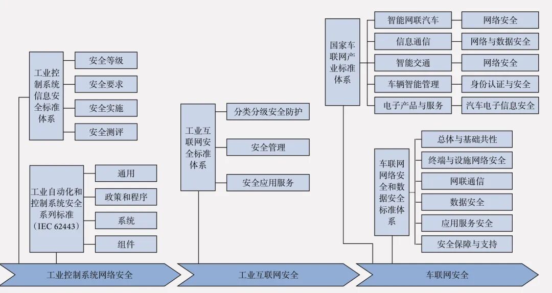 三 工业互联网安全相关标准体系 工业互联网是新一代信息通信技术与工业经济深度融合的新型基础设施,实现了人、机、物、系统等的全面连接,但也打破了传统工业相对封闭可信的环境,导致网络攻击可直达生产一线,涉及范围广泛,造成的影响巨大。2021 年,工业和信息化部指导CCSA发布了《工业互联网安全标准体系(2021 年)》,系统推进工业互联网安全标准研究。其中第一批标准的编制计划已同步启动,以加快基础共性、关键技术、典型应用等产业亟需标准的制定。目前,工业互联网安全标准体系建设已取得初步成效,为工业互联网的安全和可靠运行提供了标准化支撑,促进了工业互联网技术和应用的健康发展。 工业互联网安全体系包含分类分级安全防护、安全管理、安全应用服务等3 个类别、17 个细分领域及82 个具体方向。其中,1)分类分级安全防护类包含6 个细分领域、31 个具体方向的标准计划,聚焦工业互联网企业分类分级管理工作需求,首先确定工业互联网企业分类分级规则,面向应用工业互联网的工业企业、工业互联网平台企业和标识解析企业三类企业,分别提出安全防护要求,并针对企业的数据及网络、设备、平台、应用等各类关键要素的安全防护,设立单独的标准进行指导;2)安全管理类也包含6 个细分领域、31 个具体方向的标准计划,旨在应对网络安全威胁,从事前安全监测、事中应急响应、事后处置、日常安全运维等角度,提出了技术和管理要求,同时提出了针对工业互联网企业及其多类关键要素的安全评估工作规范和安全能力评价标准;3)安全应用服务类包含5 个细分领域、20个具体方向的标准计划,主要提出了工业互联网在应用工业云平台、5G 网络等新兴技术时需达到的安全技术要求,同时针对应用在工业互联网中的各类安全技术、产品、服务等对象,提出了安全能力要求和应用要求。 四 车联网安全相关标准体系 我国一直高度重视车联网安全工作。2018 年,工业和信息化部、国家标准化管理委员会联合印发《国家车联网产业标准体系建设指南》系列文件,其中智能网联汽车、信息通信、电子产品与服务、智能交通、车辆智能管理等5 个分册的标准体系均设置了网络安全相关专项章节,对网络安全标准进行规划设计。2022 年,面向车联网产业对网络安全、数据安全的迫切需求,以现有的国家车联网产业标准体系为基础,工业和信息化部印发了《车联网网络安全和数据安全标准体系建设指南》,包含车联网网络安全、数据安全的关键领域和关键环节等内容。 国家车联网产业标准体系中的网络安全规划主要包括以下几个方面:1)智能网联汽车分册设计了“网络安全”类标准,在通用网络安全要求的基础上,基于车联网复杂环境,以保障车辆安全、稳定、可靠运行为核心,该分册提出安全保障类与安全技术类标准共10 项;2)信息通信分册设计了“网络与数据安全”类标准,以新一代信息通信技术的应用为切入点来建立健全网络安全防护体系,围绕通信网络安全体系架构、网络安全防护等,该分册设立安全标准规范共15 项,以提升网络安全防护能力,实现车、路、人、云的有效互联互通;3)智能交通相关分册设计了“网络安全”类标准,聚焦运营车辆和基础设施领域,该分册设计了证书密钥管理和网络安全防护两类共7 项标准,为基于车路协同的车联网系统提供网络安全防护措施;4)车辆智能管理分册设计了“身份认证与安全”类标准,以保障车联网智能网联汽车运行安全为核心,该分册规划了智能网联汽车身份与安全、道路交通管理设施身份与安全、身份认证平台及电子证件3 类共17 项标准,支撑智能网联汽车和道路交通管理系统、设施之间身份互认,保障道路交通有序安全畅通;5)电子产品与服务分册设计了“汽车电子信息安全”类标准,以防护电子产品与服务通用规范、核心技术及关键应用为目标,针对车联网产业相关基础产品、终端、网络、平台、服务等,该分册规划了入侵检测防护、访问控制、安全态势感知等相关技术标准共7 项。 车联网网络安全和数据安全标准体系涵盖了车联网产业的各个关键环节,其标准体系采用分层方式组织,从基础通用要求到具体的技术应用,所形成的标准体系框架逻辑清晰、内容完整、结构合理、界限分明。该体系主要包括6 个方面内容:1)总体与基础共性标准是车联网网络安全和数据安全的总体性、通用性和指导性标准,涵盖术语和定义、总体架构、密码应用等基础性内容;2)终端与设施网络安全标准专注于对车载设备、车载网络、路侧通信设备、车联网网络设施与系统等提出安全要求;3)网联通信安全标准规范了车联网通信网络的安全要求,包括通信安全和身份认证两个方面,确保车辆间、车辆与基础设施间的通信安全;4)数据安全标准在对车联网数据进行分类分级管理的基础上,聚焦数据全生命周期安全和个人隐私信息保护;5)应用服务安全标准主要规范车联网服务平台和应用程序的安全要求,以及典型业务应用服务场景下的安全要求;6)安全保障与支撑标准明确了车联网安全风险评估、安全能力评估、监测与应急管理标准,为健全车联网安全管理体系提供了重要支撑。 五 面临的挑战及对策建议 随着新一轮科技革命和产业变革蓬勃兴起,各类新兴技术、产品和服务在工业控制系统内深度融合应用,5G 等无线技